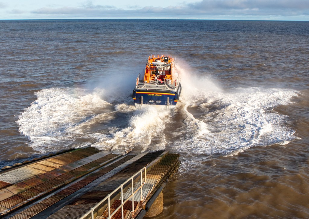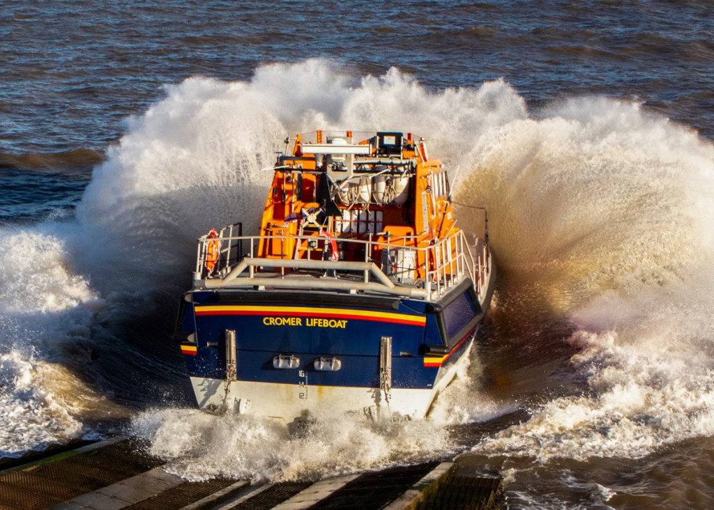 At Cromer aligning the boat for the slipway is quite difficult in windy conditions or when the sea is running.