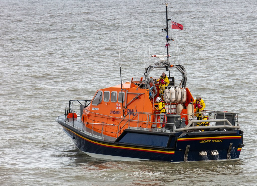 As my great grandfather was a lifeboat man I have always had an interest in the work of the RNLI and it was good to have an opportunity to watch the Cromer boats out practising.
