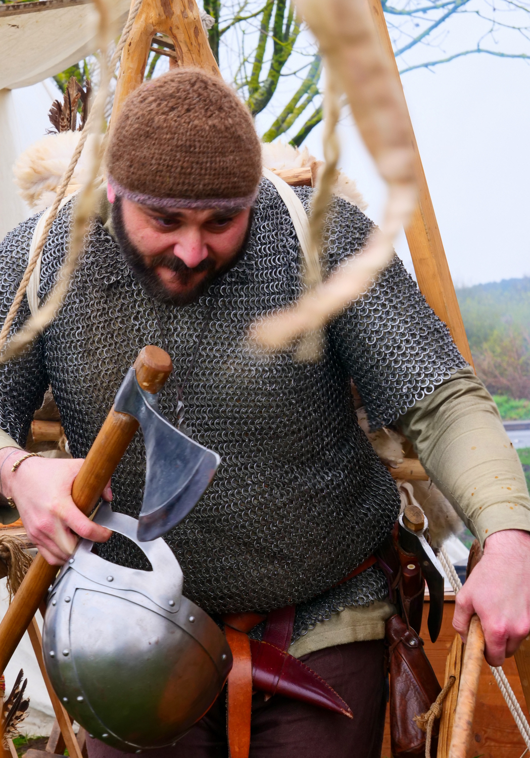 Nevertheless, despite the fairly constant rain, all those taking part seemed to be of good heart. One or two smile as I brandished the camera and I had to remind them that real Vikings were not supposed to smile – very out of character – especially as far as Christians were concerned. However as I had no hidden gold or silver I was allowed to go on my way unmolested.