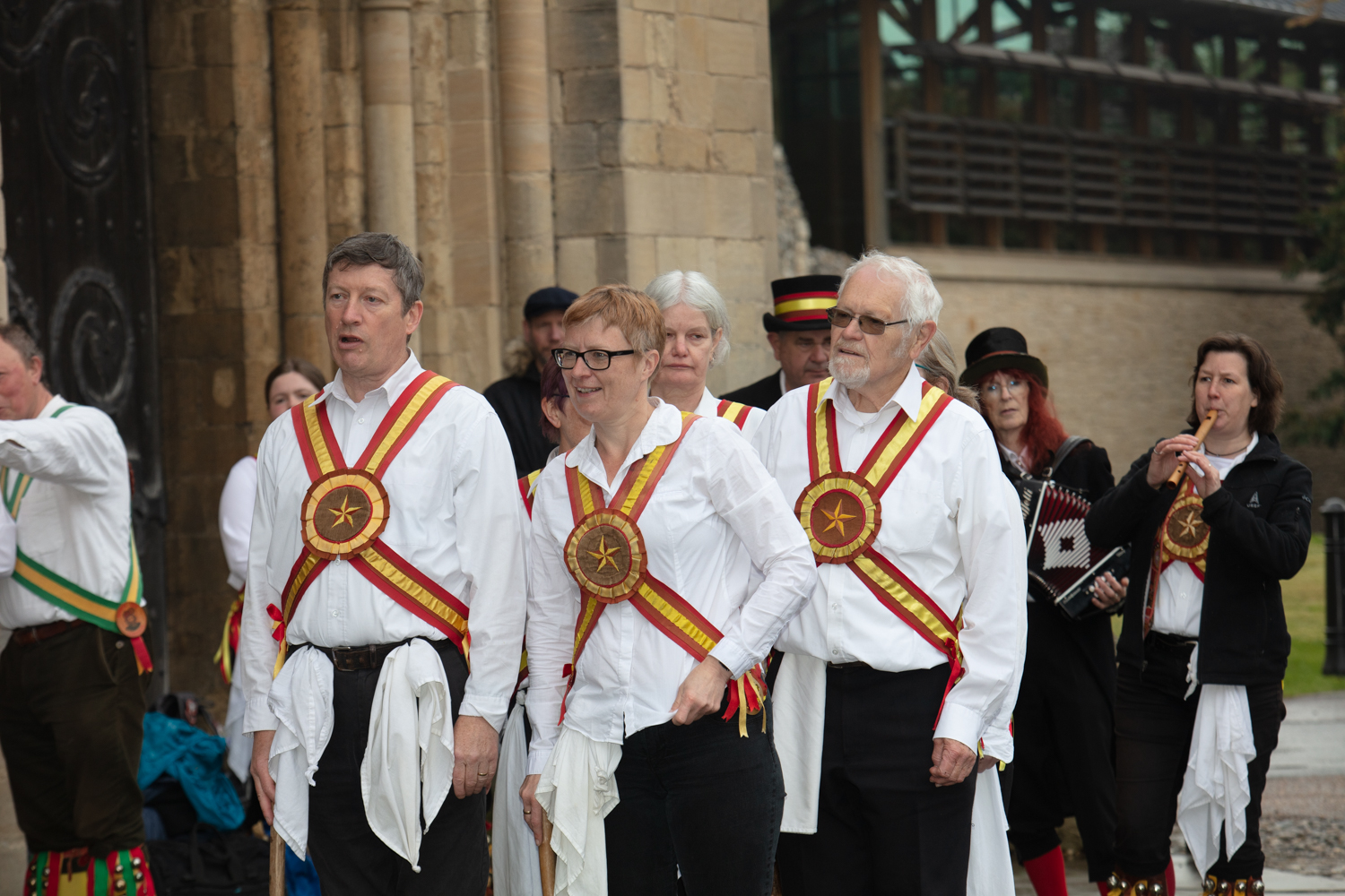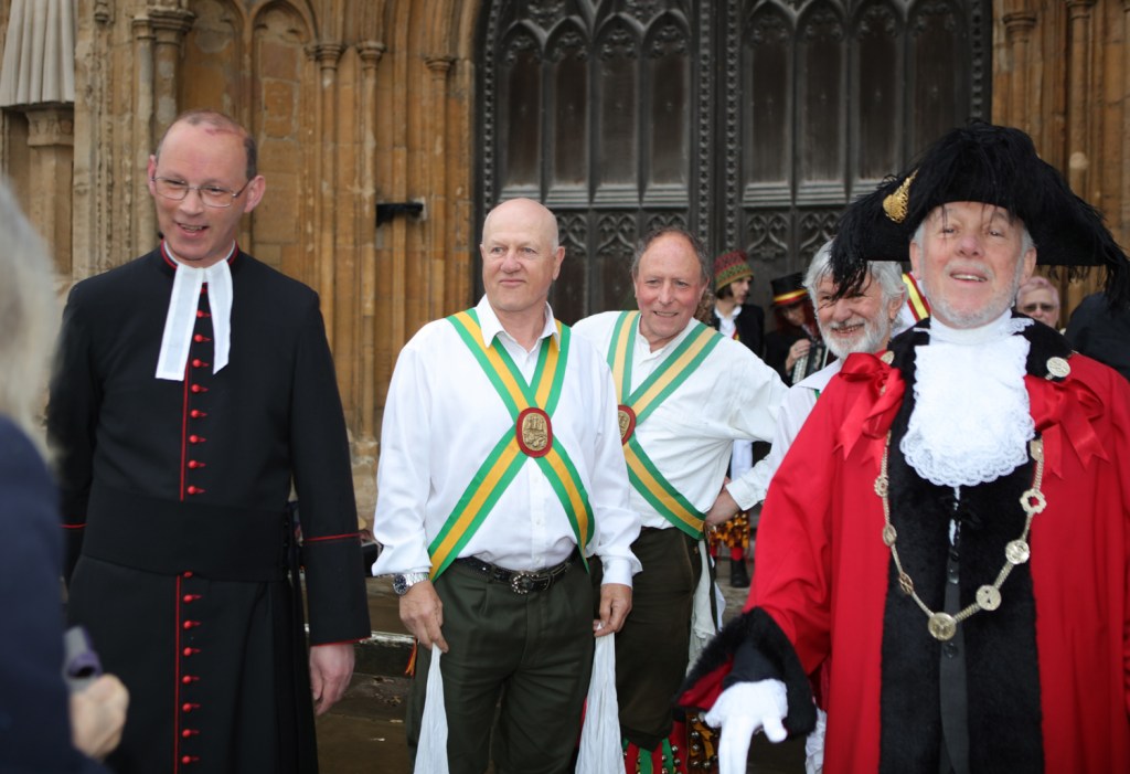 The arrival of the Dean of Norwich was greeted with much enthusiasm. Perhaps there was a feeling that if it rained too hard the he might have the key of the great west door in his pocket and allow the dancing to continue inside. In the end it wasn’t necessary- the rain abated and the show went on.