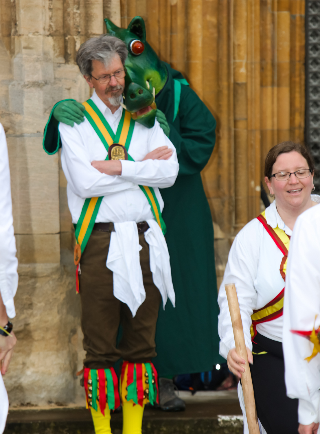 I started out from North Norfolk a good hour before, but by the time Kemp’s Men and the dancers of Golden Star arrived in the Cathedral Close, they had already hailed and paid homage to the traditional beginning of summer by performing at two other locations in and around the city.