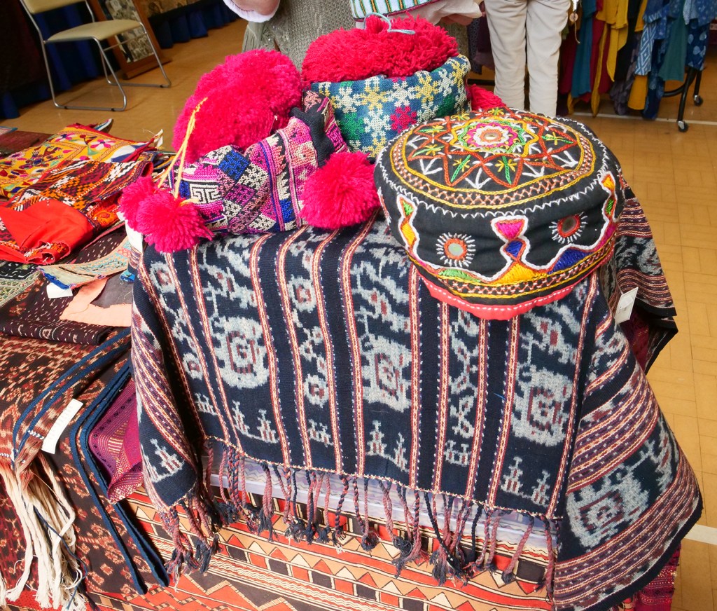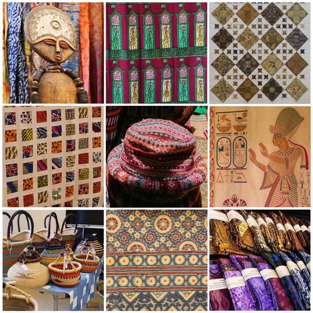Last week I visited a touring textile fair where exhibitors produced wares from numerous nationalities. There were garments from central Africa, from South Africa, India and one company who called themselves the Tentmakers of Cairo. Beyond that stalls were filled with hats, baskets and medallions which originated in the bazaars of Syria and the Middle East.