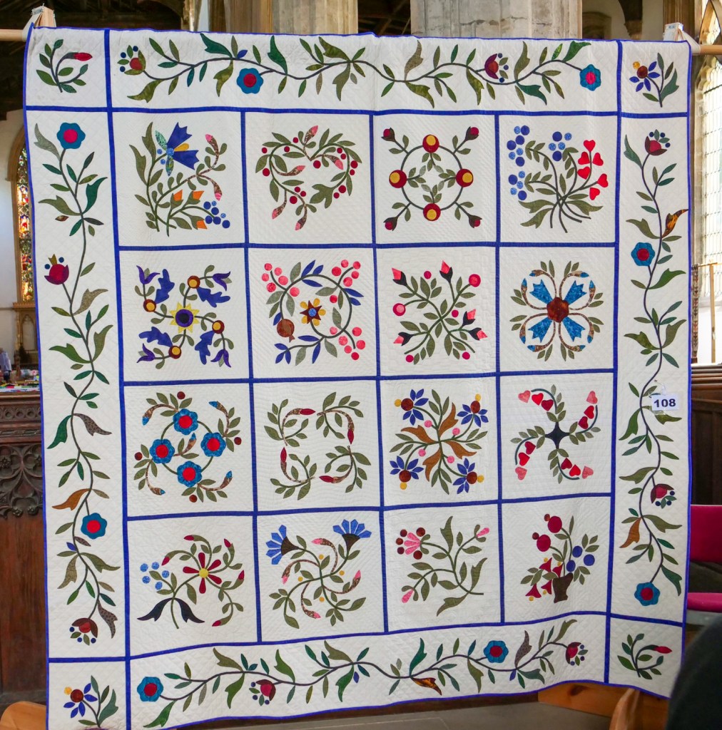 But I reckon if I had a covering of a quilt on my bed like any of the ones I saw at the exhibition in Kings Lynn produced by the Samphire Quilters two weeks ago, my rising would be transformed and I would become a much more jolly soul. (No emails please about how much more difficult I would be if jolliness hit me!)