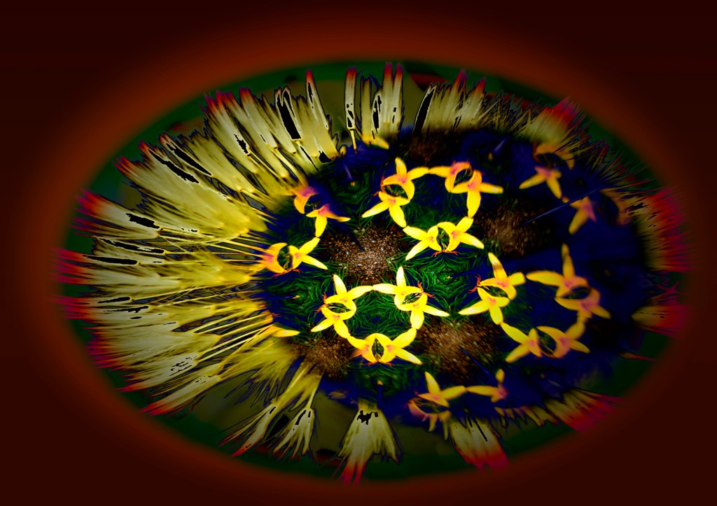 Not sure what this one started life as – obviously something pretty mundane – so I whizzled it round a bit (note the use of the technical photographic term) and put it against a dark background. It still looks rather mundane but it is a different sort of mundane if you know what I mean.