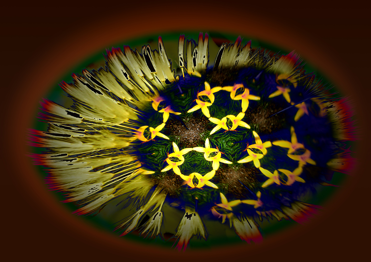 Not sure what this one started life as – obviously something pretty mundane – so I whizzled it round a bit (note the use of the technical photographic term) and put it against a dark background. It still looks rather mundane but it is a different sort of mundane if you know what I mean.