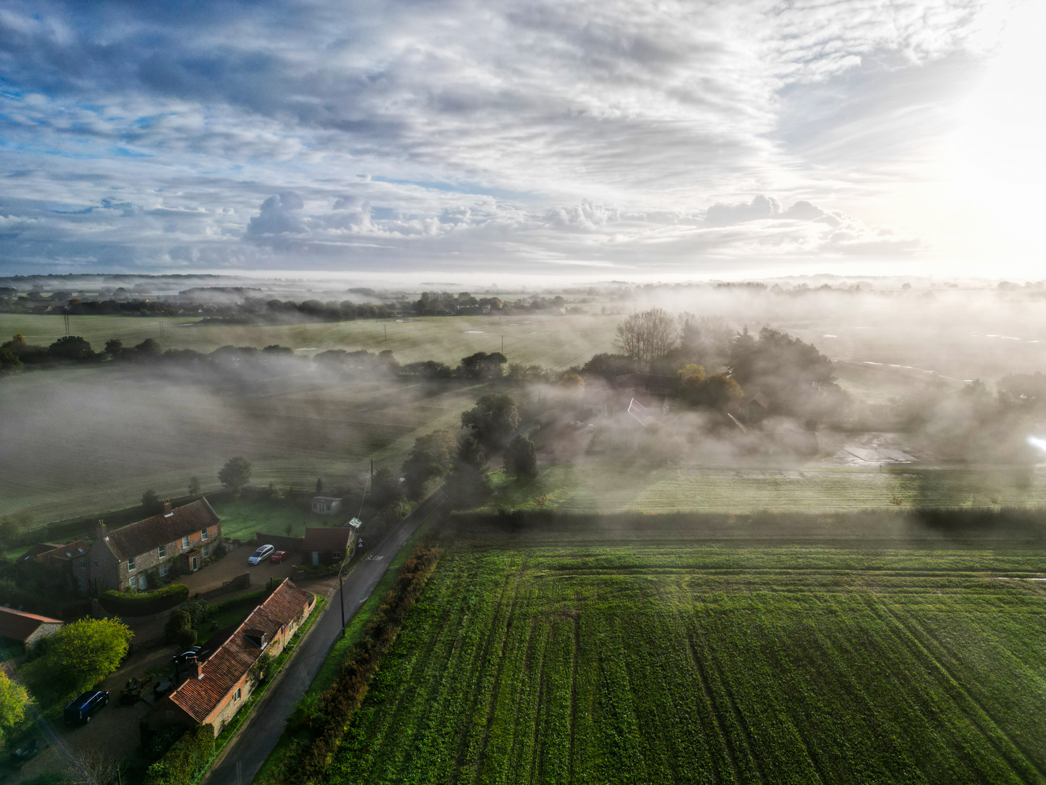 I have enjoyed putting it up on slightly misty mornings. I am not fortunate enough to live in one of those wonderful locations half way up a mountain where on a sunny day one can see the mist hanging in the valleys, but putting the drone up, even over our rather flat landscape may reveal gentle elements of mist and an emerging sky behind.