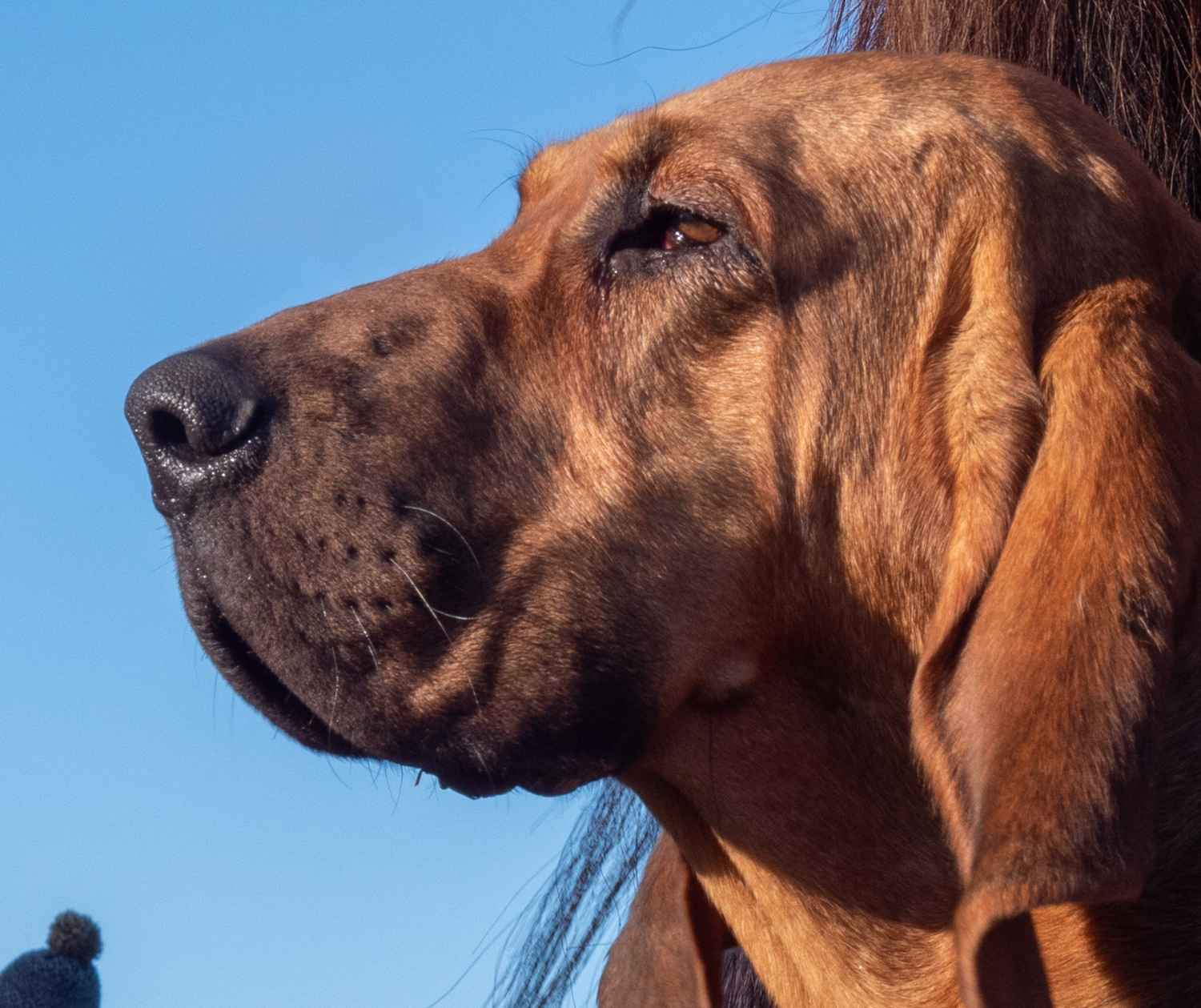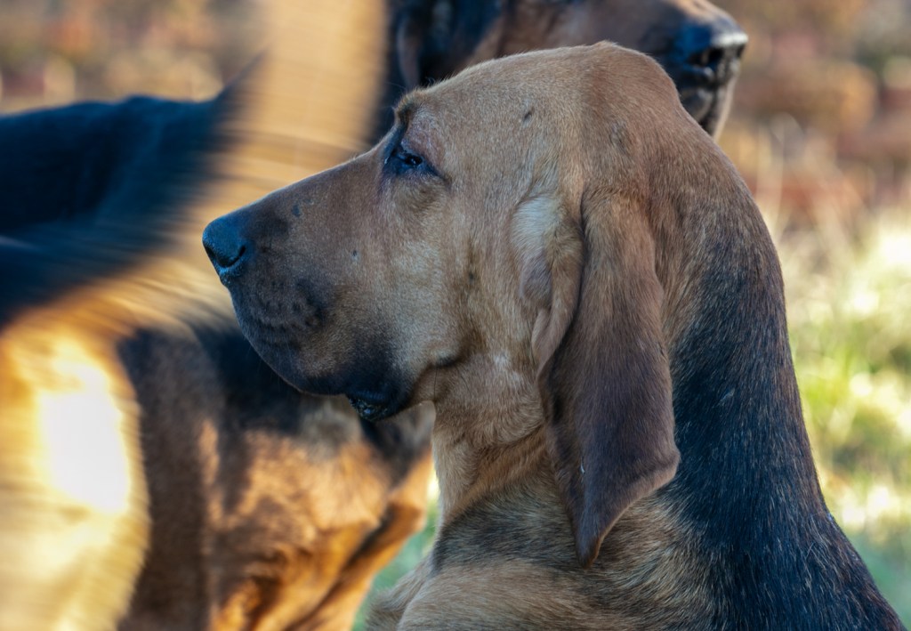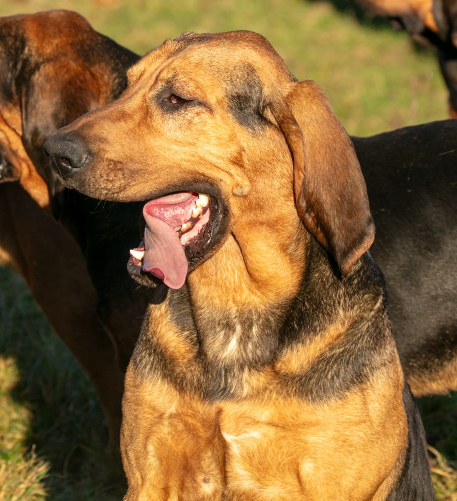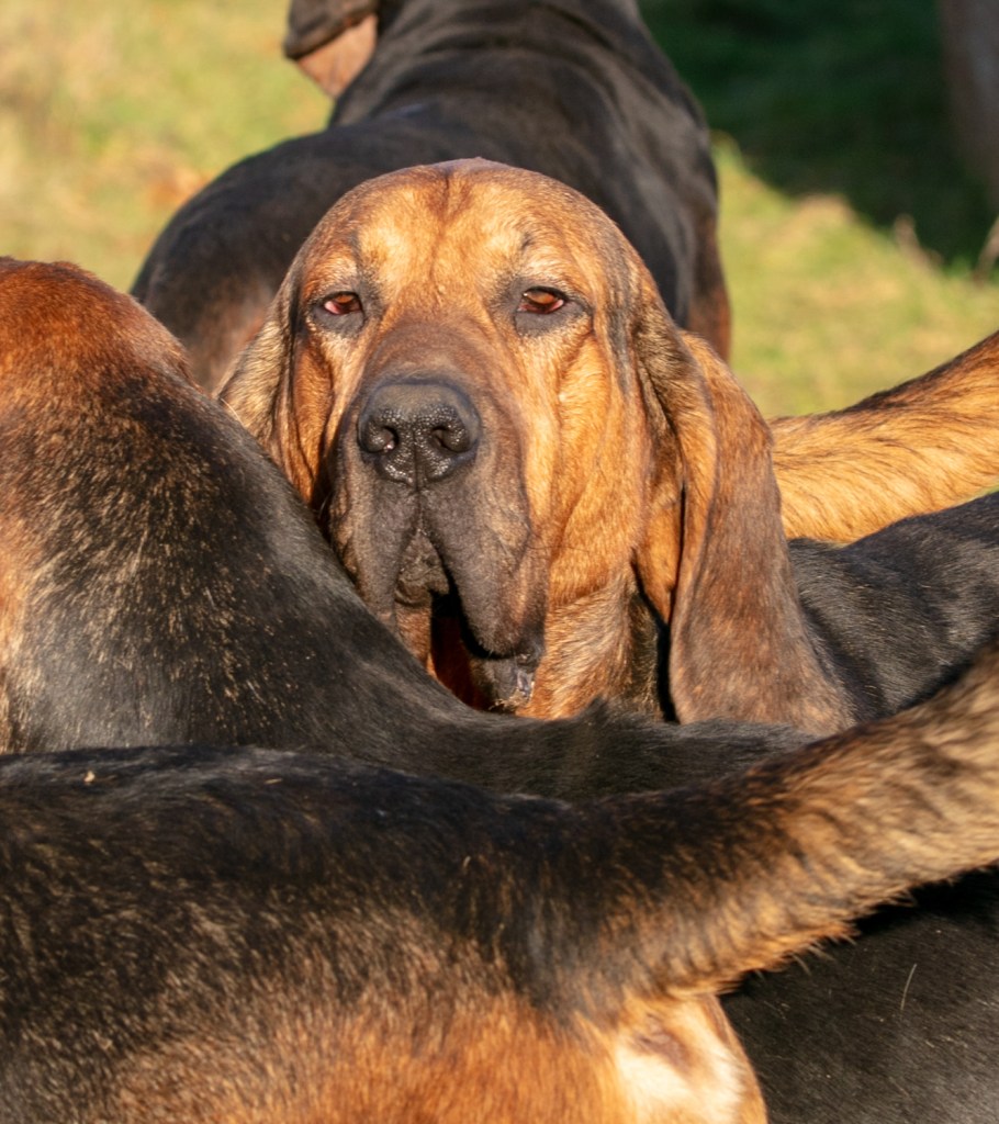 When the dogs appeared I began to twig that something was different. The dog that bounded towards me wasn’t a foxhound. In fact the pack looked more like those blood thirsty howling animals that used to hurtle across foggy Dartmoor in pursuit of escaping prisoners. They were BLOODHOUNDS!