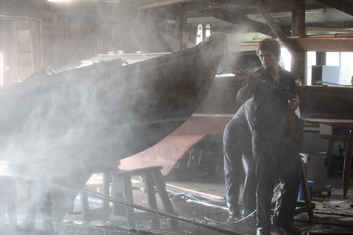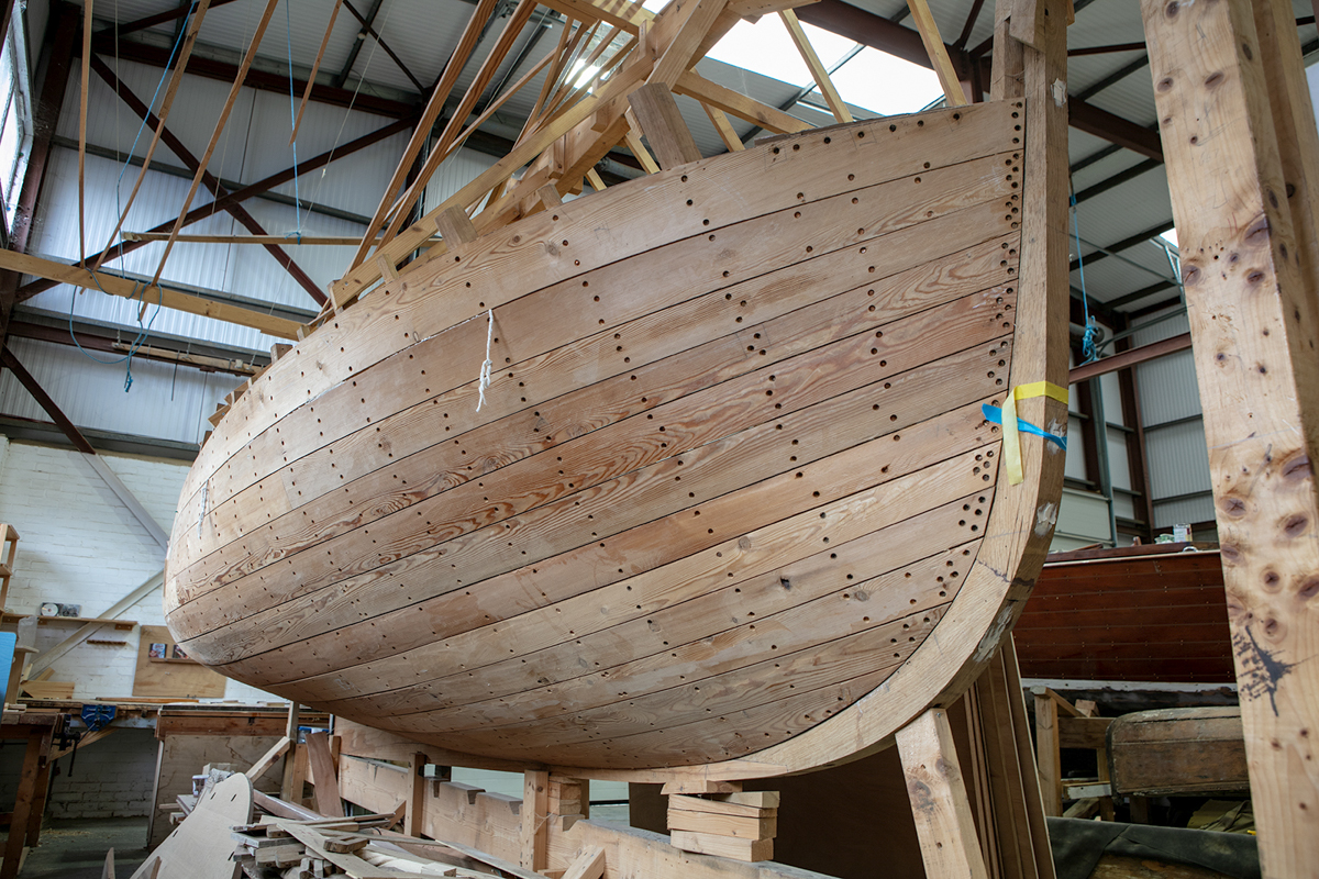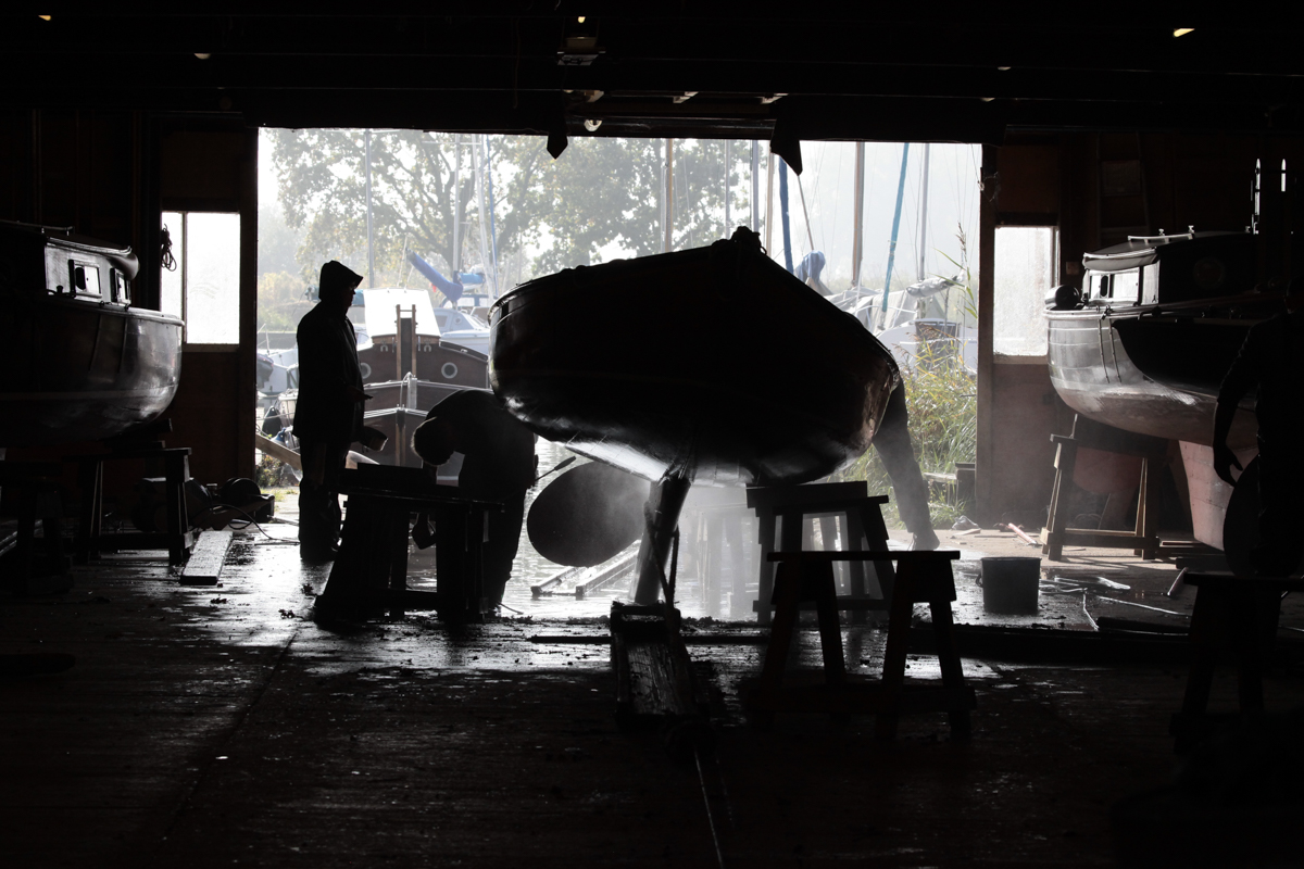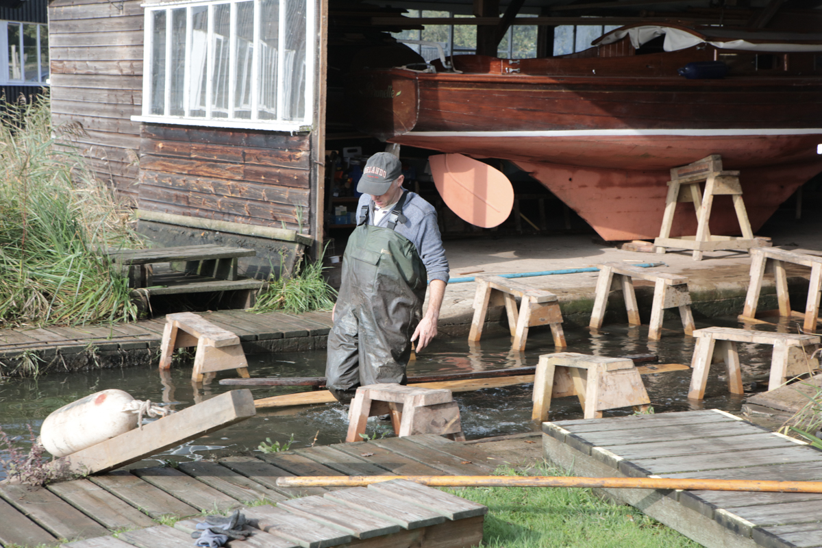 Boatyards around the Norfolk Broads employ staff who are dedicated to care for, preserve and repair wooden craft. At Hunter’s Yard at Ludham boats belonging to the Heritage Fleet are taken out of the water each Autumn, cleaned and stored so that work can be done on them.
