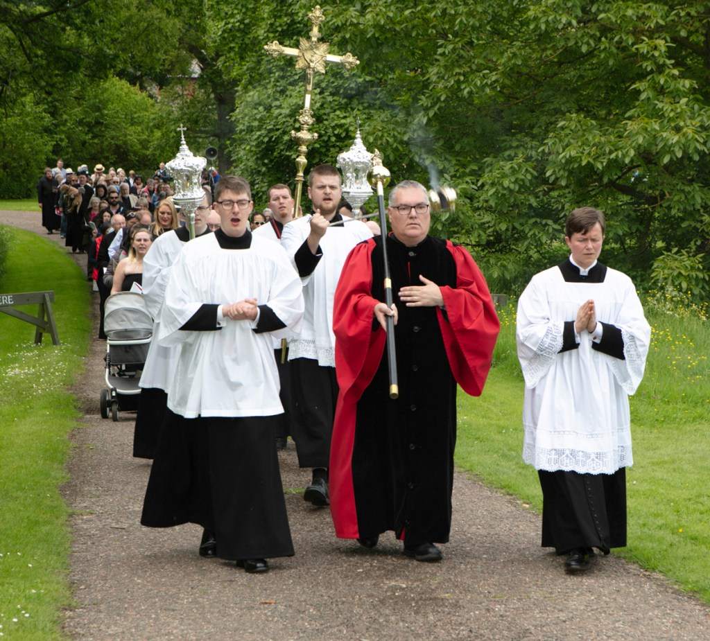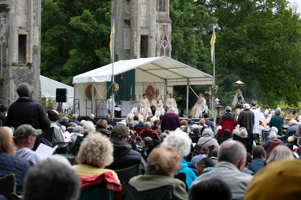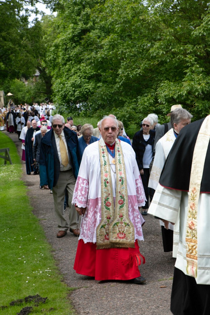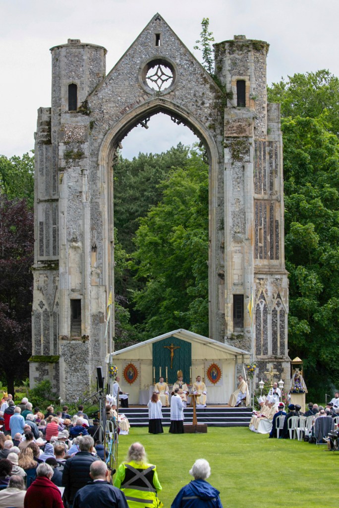 At Whitsuntide – you remember Whitsuntide – it was when we had a week’s holiday once upon a time! On Whit Monday Walsingham hosts The National Pilgrimage to the Shrine of Our lady of Walsingham. People (and especially clergy) come from all over the UK to join in the fun.