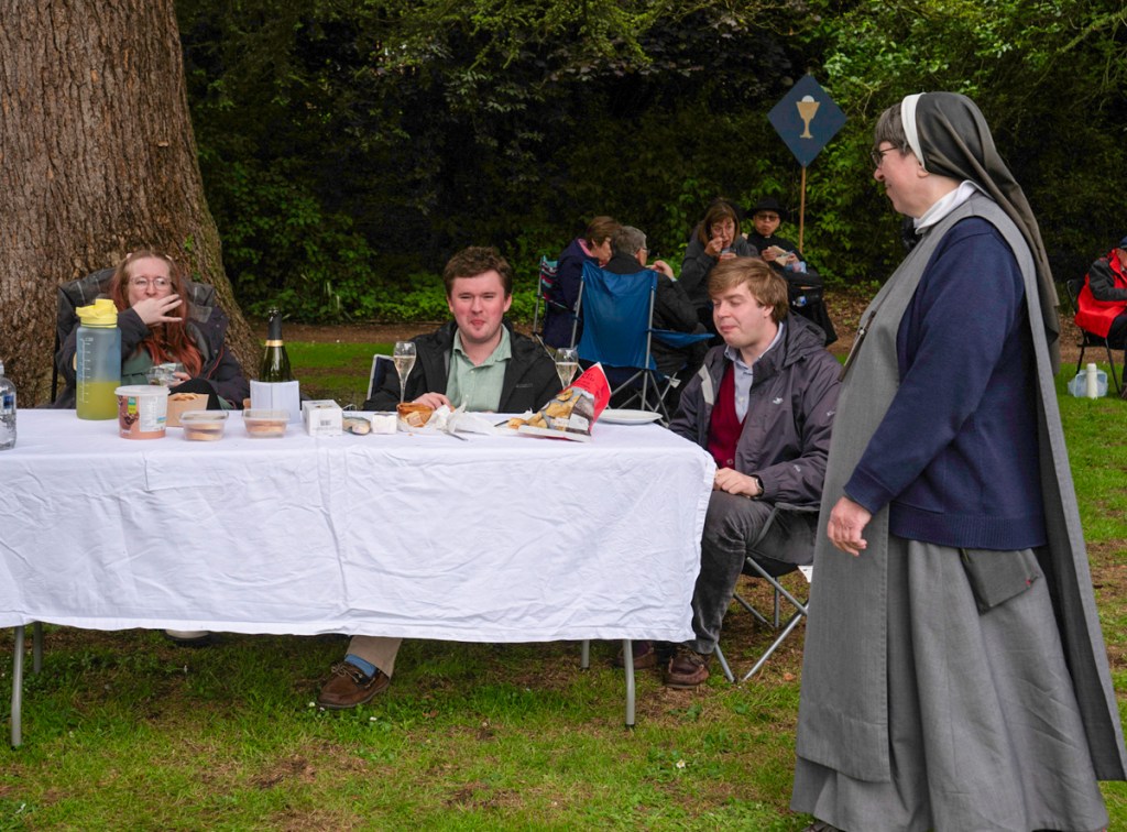 Once that service is over everyone sits down among the abbey ruins for lunch – usually picnics they have brought with them.