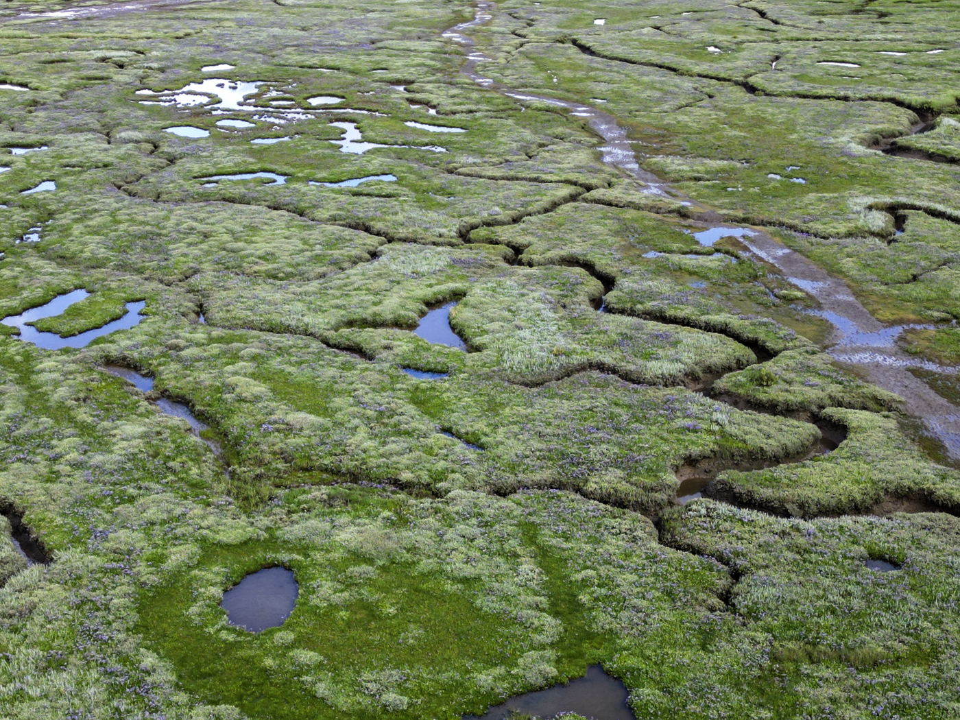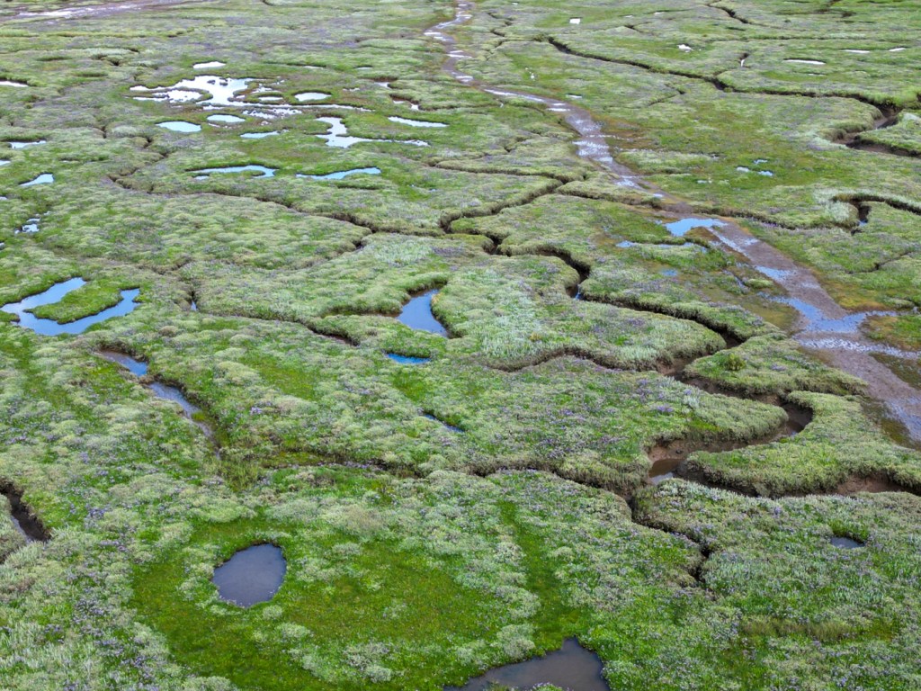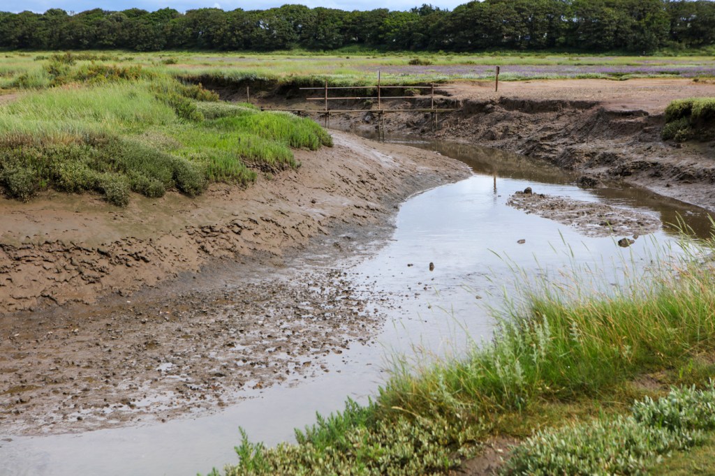 So far not doing terribly well, I did wonder if putting the drone up would help, but true to form it didn’t. The oystercatchers got very concerned about it and it was clear that if the machine went up then the plants would be virtually invisible. So that was the end of that. What the drone did show was that access to some of the sea lavender was hampered by a missing bridge or its makeshift replacement, which I didn’t like the look of.