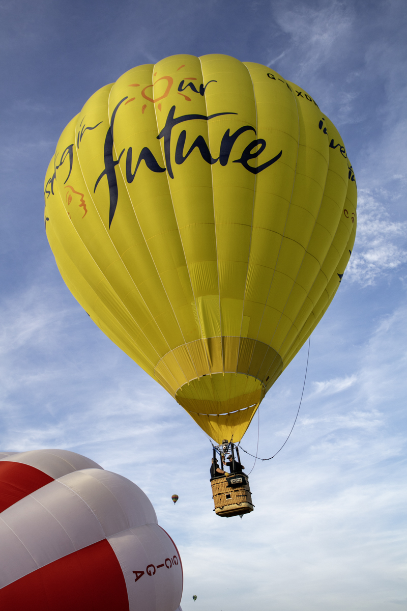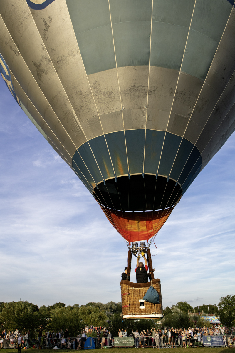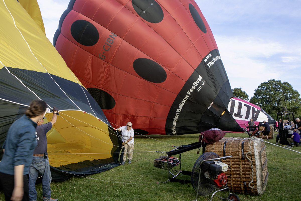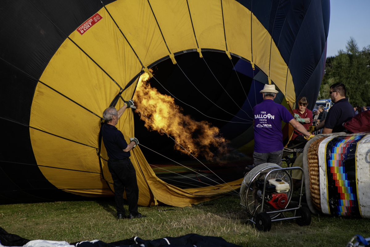 The preparation was feverish. Ground crews worked really hard to get everything right. Air was blown in to the canopies and eventually as the baskets began to tip upwards, burners were ignited and the show was more in the air than on the road.
