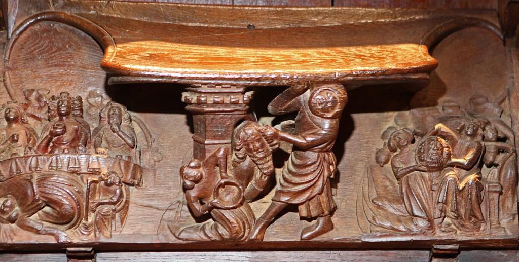 Peeping under seats is not exactly a habit of mine, but one of the vergers suggested I looked at the misericords in the choir. This one really is an elaborate bum shelf, if you’ll pardon the expression.