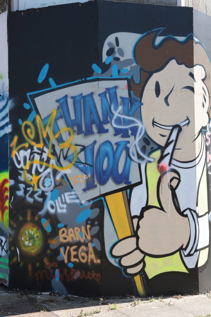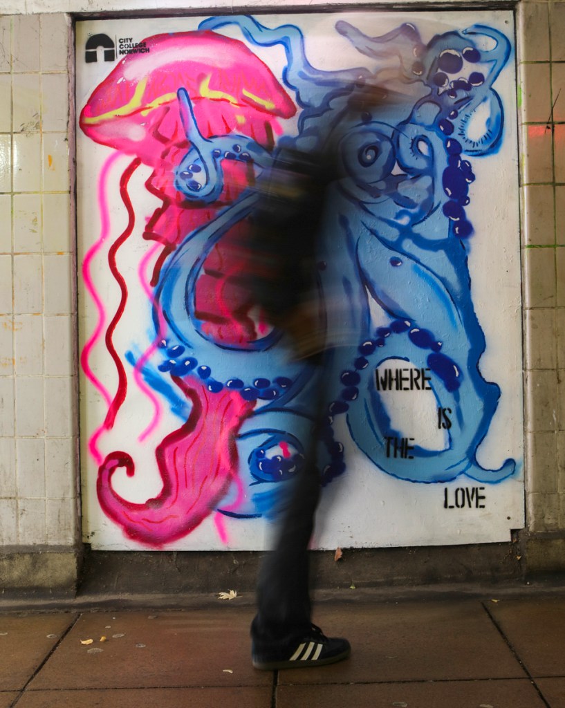 I am never quite sure why, from time to time I am drawn towards street art and pictorial graffiti. I think it is the colours and the contrasts -sad areas of a city being brightened up by imaginative drawings.
