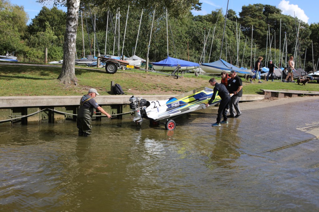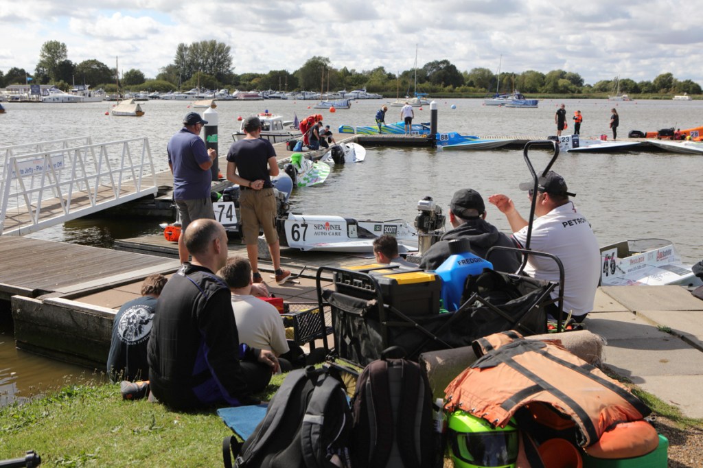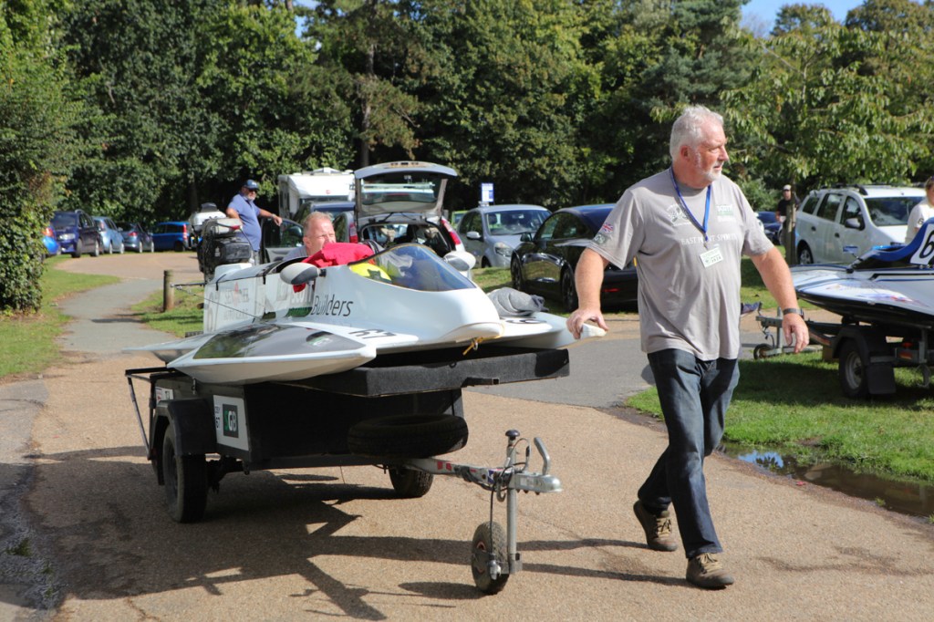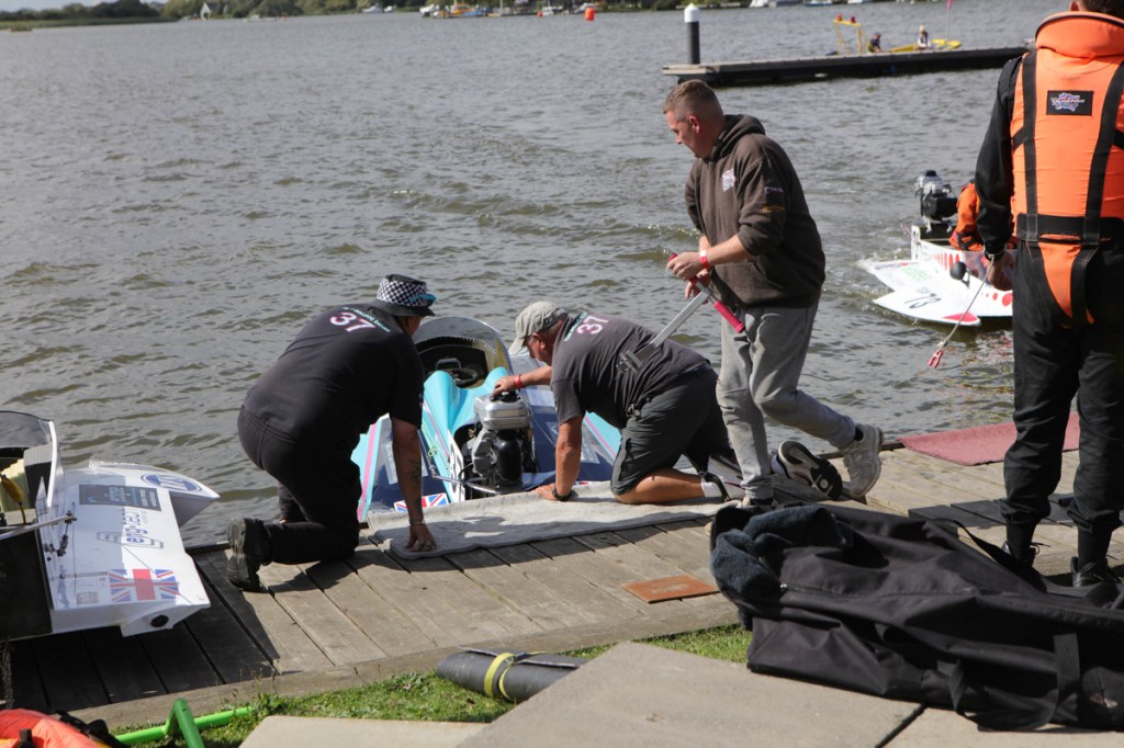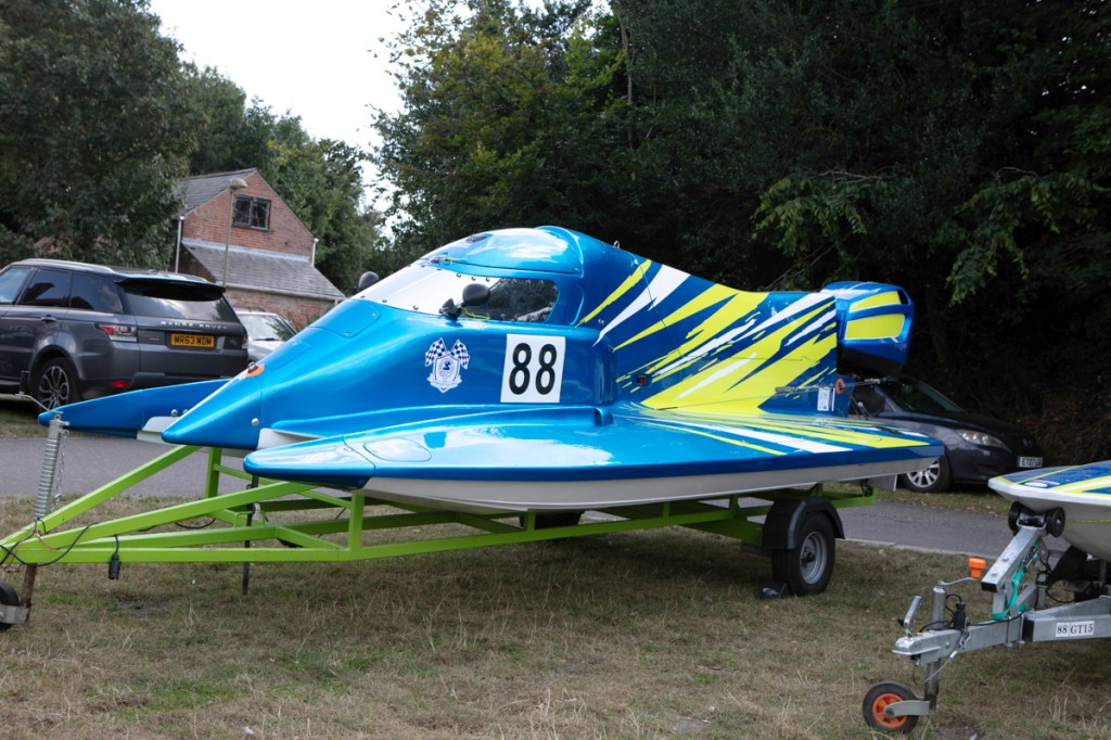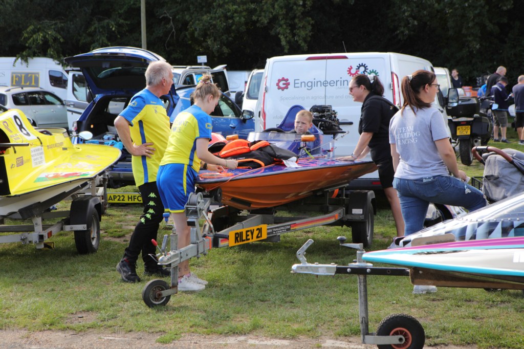 The power boats were much smaller than I expected they would be. They began arriving, with support crews into the preparation area. Most were towed behind cars or vans. And how they all gleamed in the late summer sunshine – real shiny affairs.