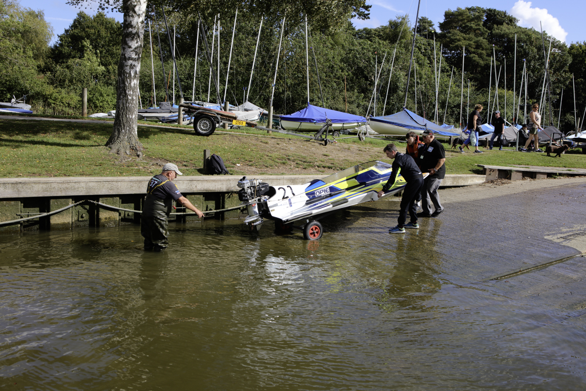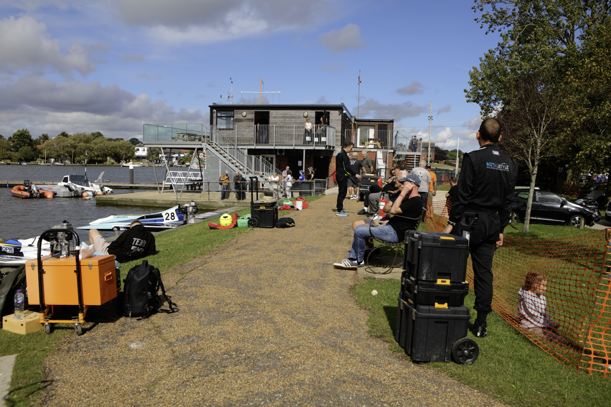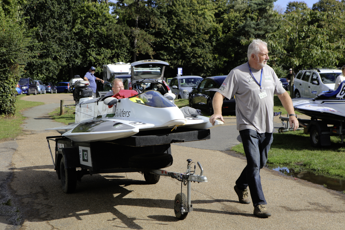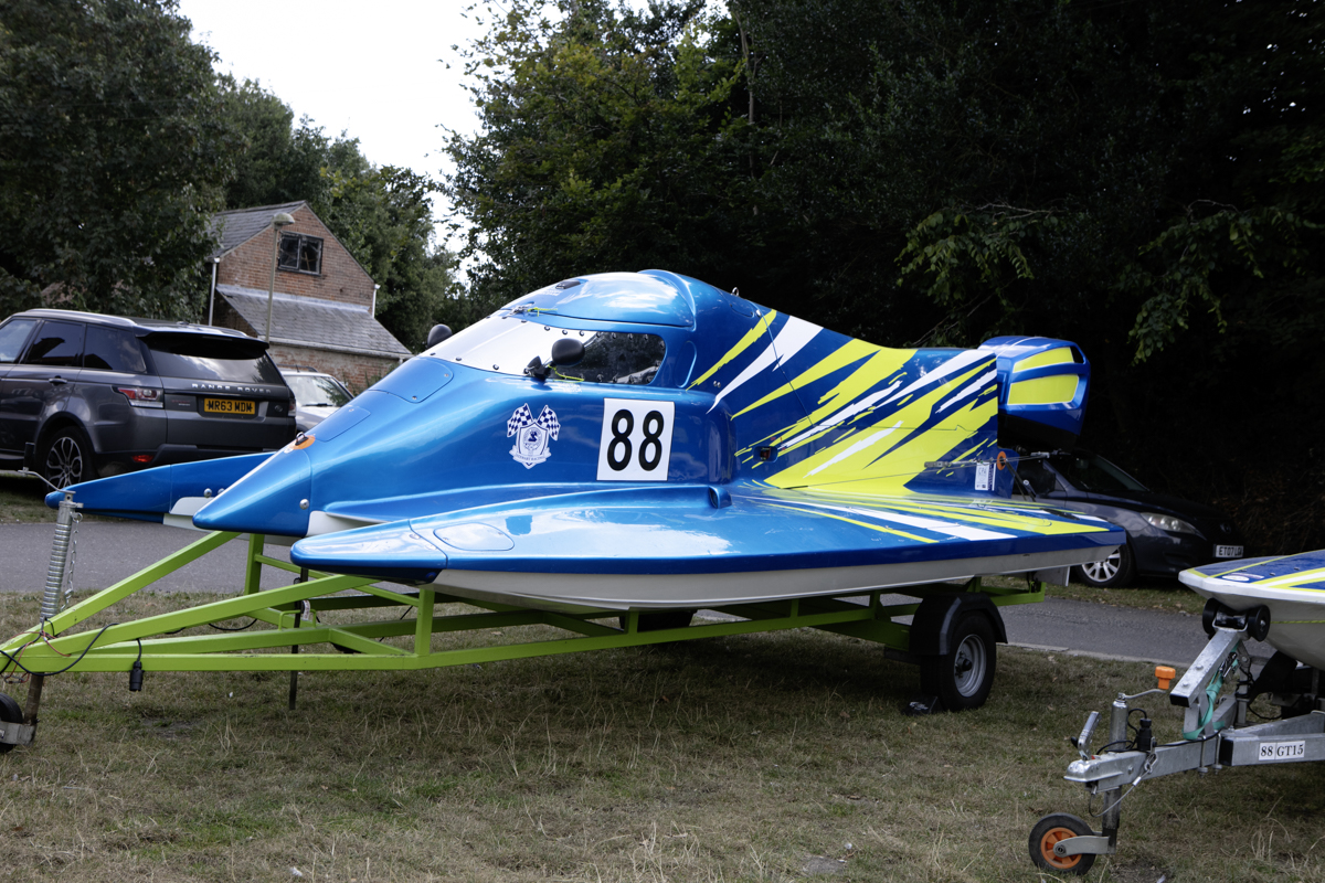 The power boats were much smaller than I expected they would be. They began arriving, with support crews into the preparation area. Most were towed behind cars or vans. And how they all gleamed in the late summer sunshine – real shiny affairs.