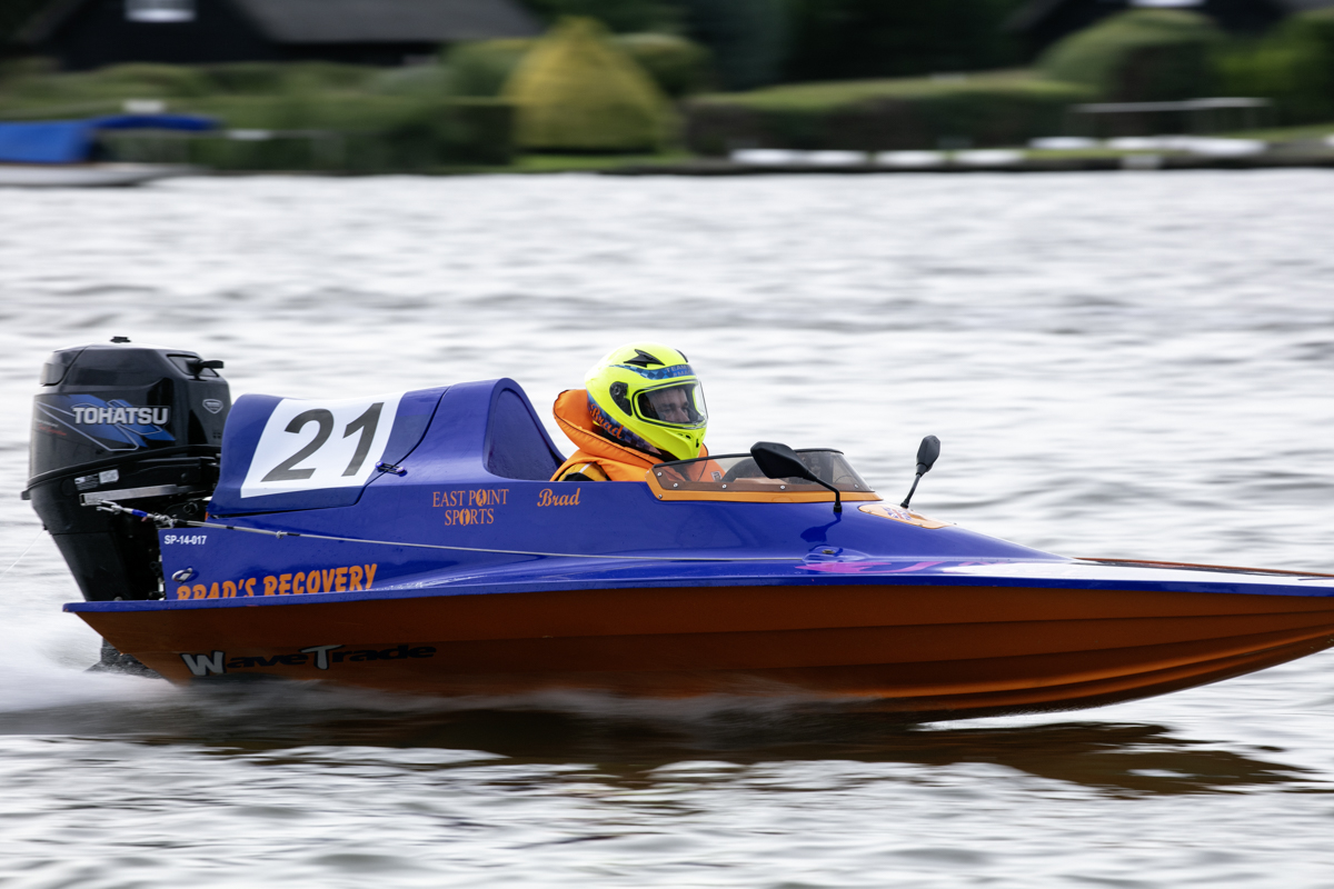 The start of the event itself was delayed because of strong gusts of wind. I think when you look at how light weight some of these boats were it becomes obvious that it would take relatively little wind to overturn them when they are cornering under power.