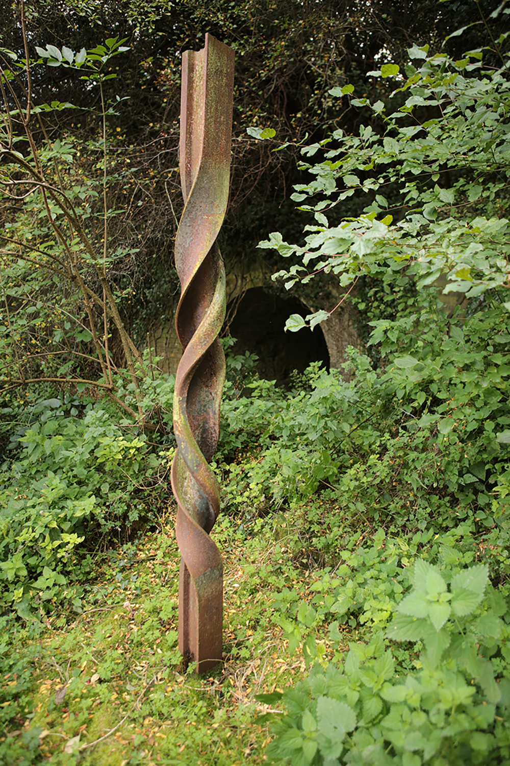 Given a captive audience Nigel will hold the floor for an hour or more. Obviously this is a good thing – on the other hand though it can mean that visitors to the forge never emerge and begin to explore the woodland which is adjacent to his work area. Hidden within this wood are works of art – all made of metal.
