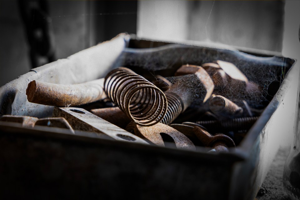 I found (as I always do ) that my pictures resembled – not so much artistic creations – but collections of rusty nuts and bolts. At one stage there had been great excitement over a number of cobwebs, which I never actually managed to find, but if I had I don’t think they would have enhanced my pictures at all.