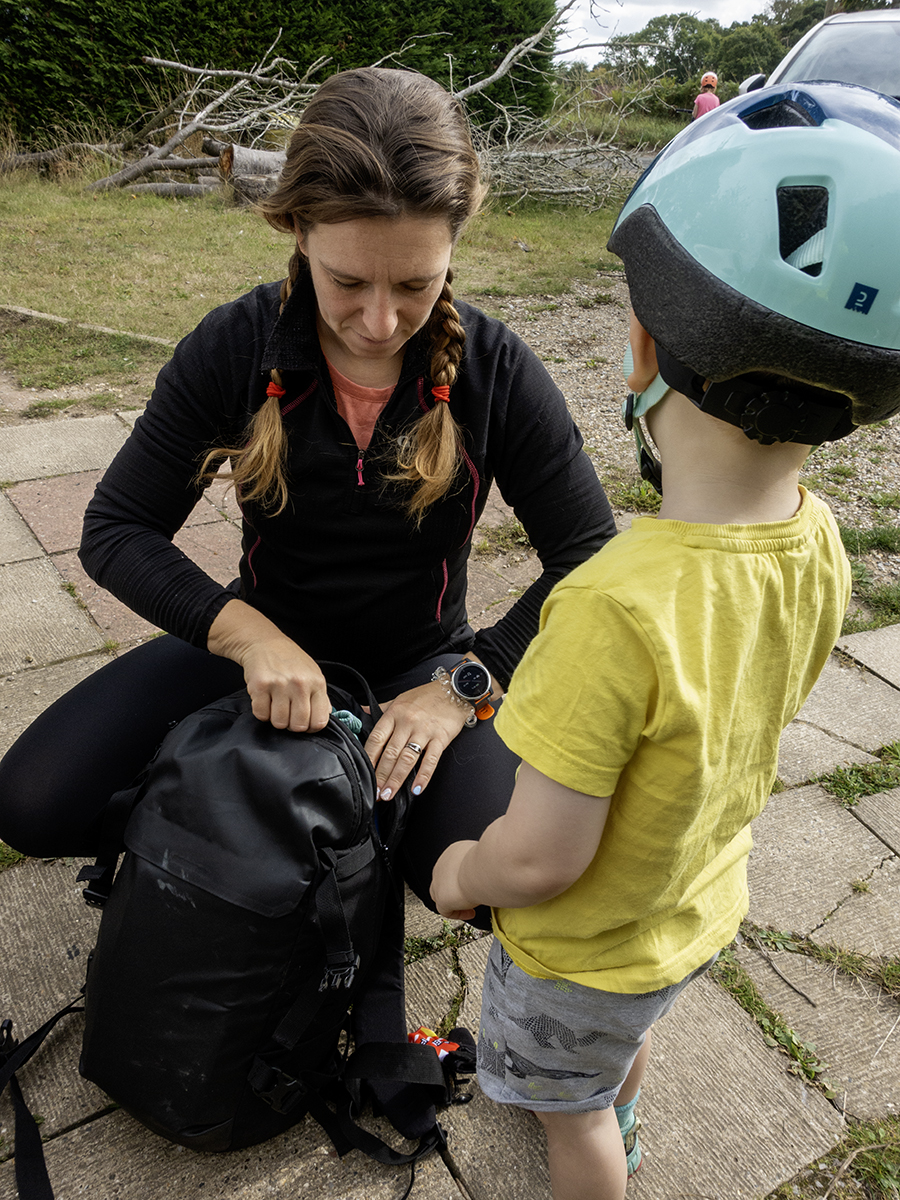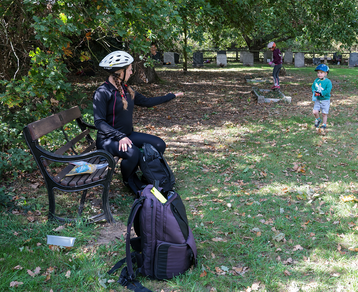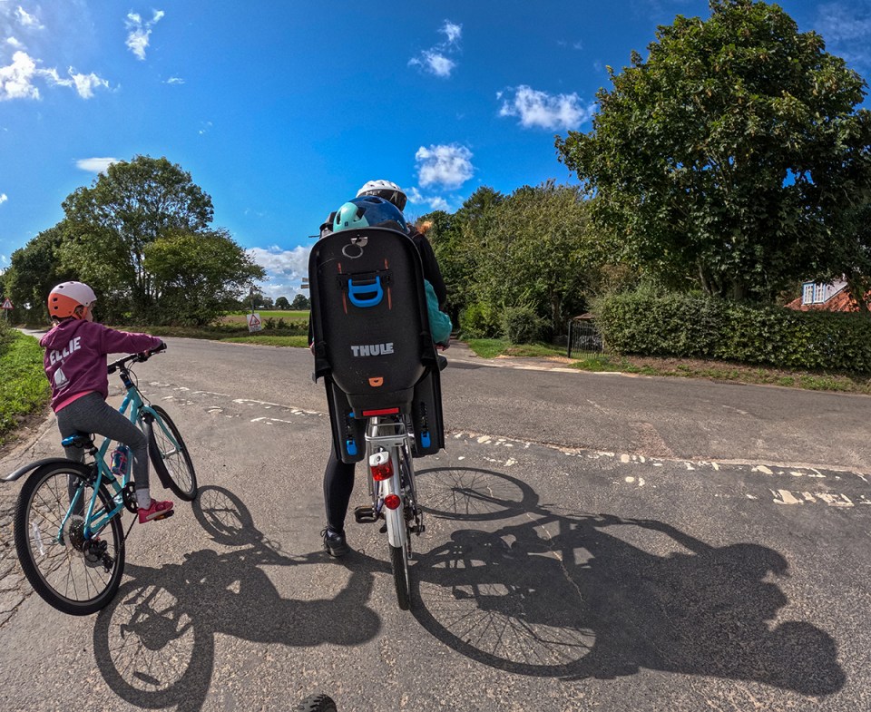 I suppose looked at from their point of view what they saw was a lady with an arm waving 3 year old on the child seat behind her, a six year old who from time to time wobbled a bit and a lunatic at the back who was riding a bike and managing no less than 3 cameras.