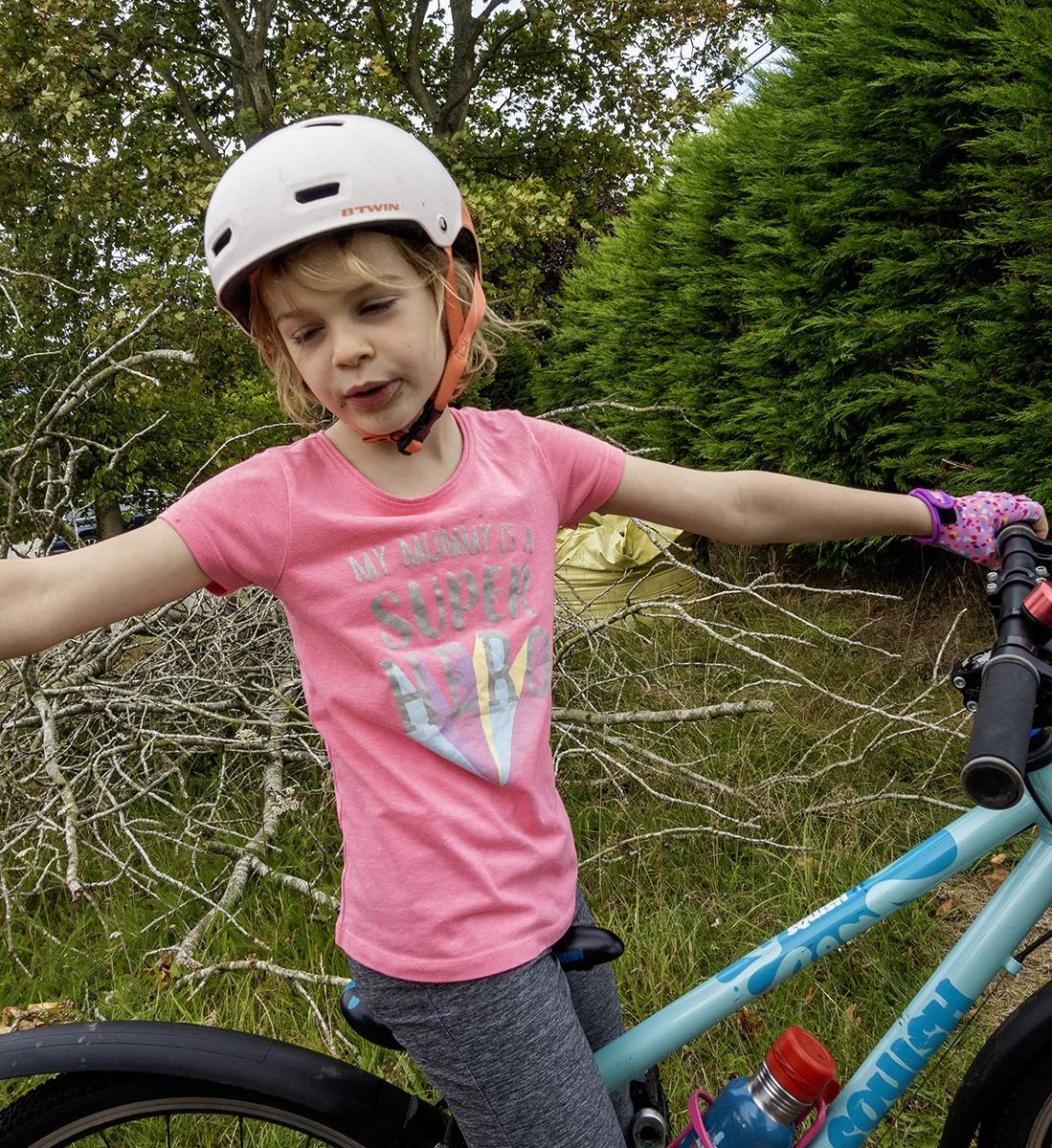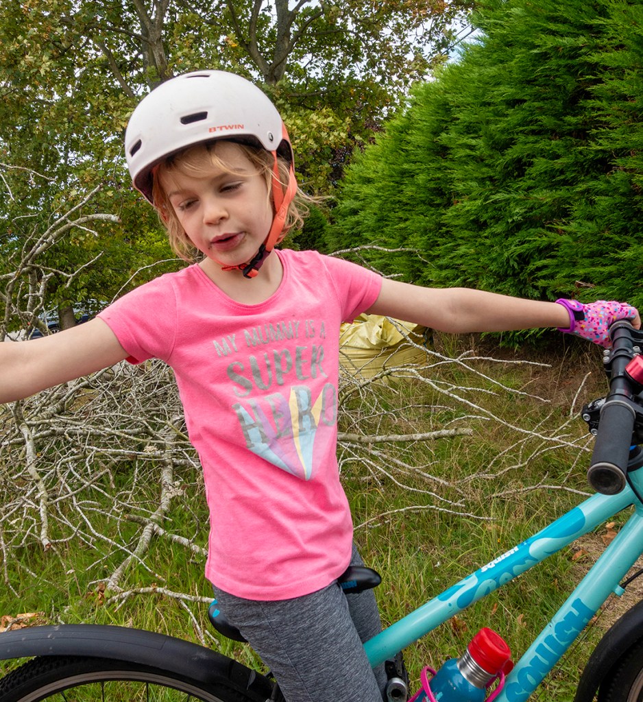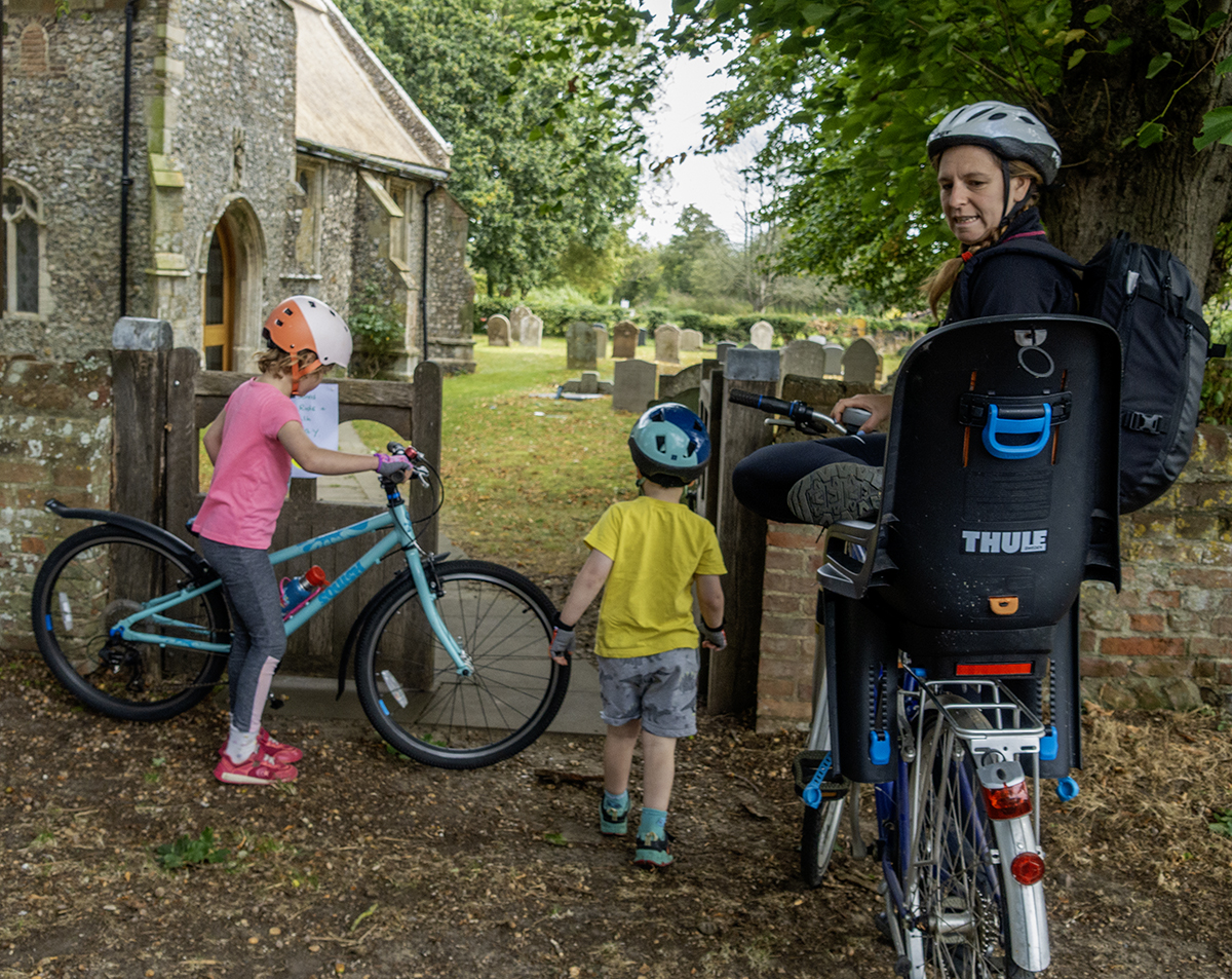Ellie had to be taught and get used to the fact that the new bike had 8 gears – for her something of a new phenomenon. There was a sort of quick lesson from mum after the first church and Ellie soon got the hang of it (not bad for a 6 year old).