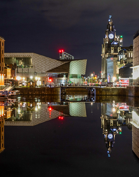 Just around the corner from the dock there are numerous magnificent buildings which boarder the Mersey waterfront. These are best seen during the daylight hours and the effect is even better if the sun is shining.