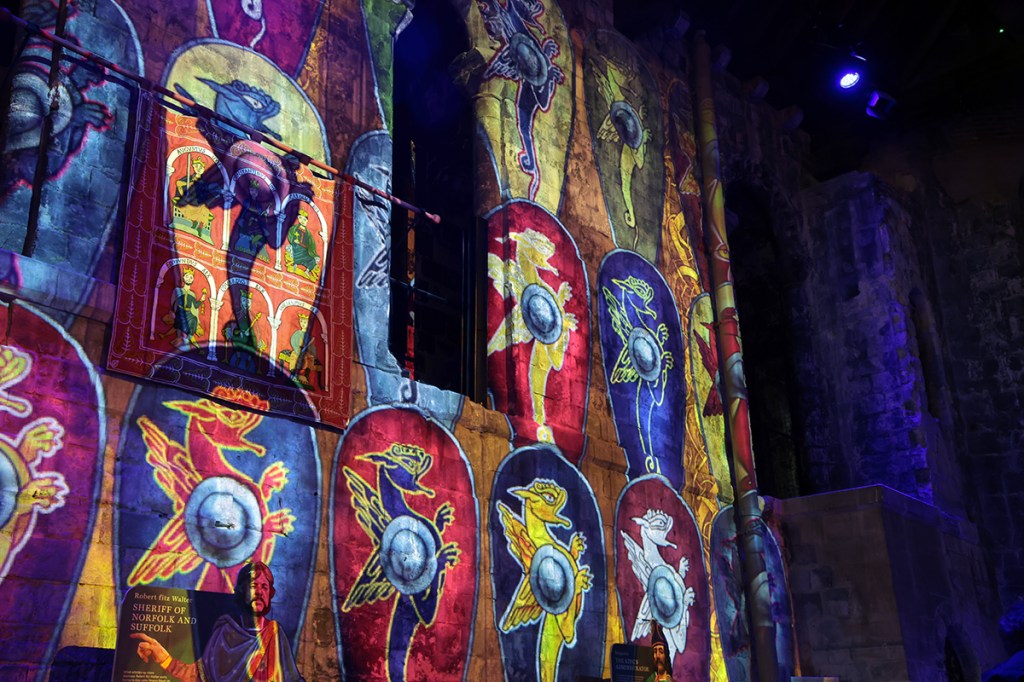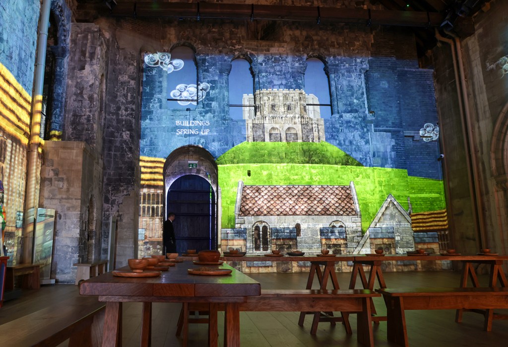 The other thing that is peculiar about the dining area is that at certain times bits of the history of the building of the castle are projected on to the walls on three side of the room.