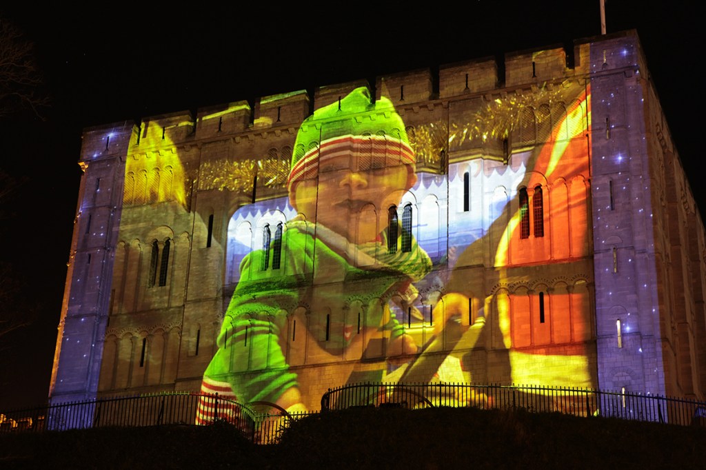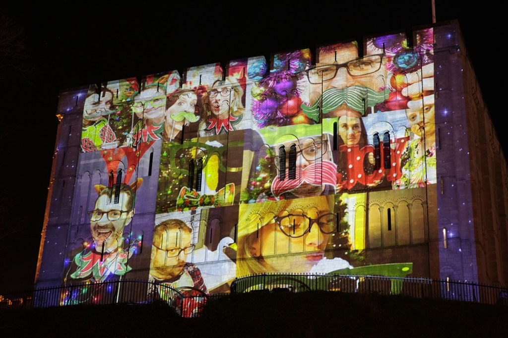 To be fair these two images were taken some years ago when the castle contributed to the Norwich lights. Don’t ask, because I don’t know who the people were – anyway some of them will have grown up/old a bit since then!