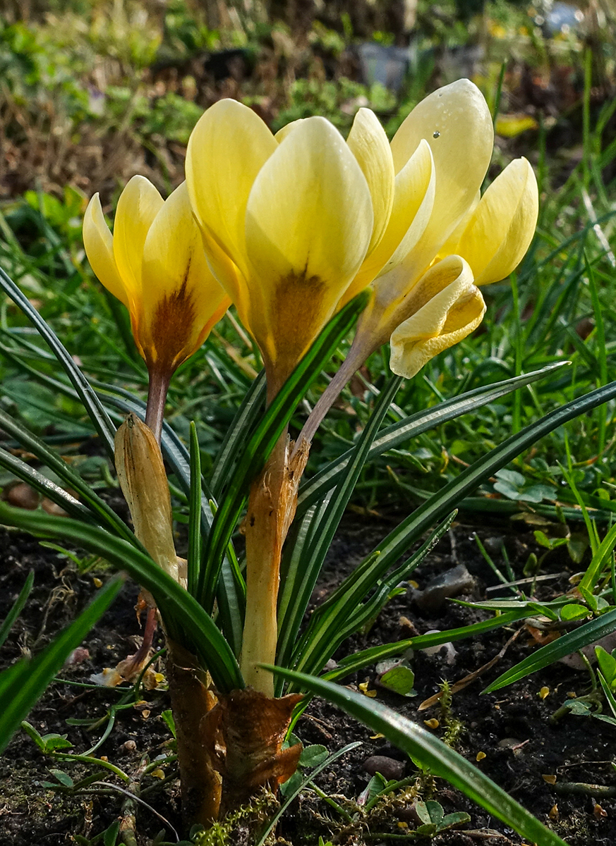 Welcome to the crocuses and or course the primulas- there ‘s another educational bit – I thought crocuses were either white or purple, but I managed to find these.