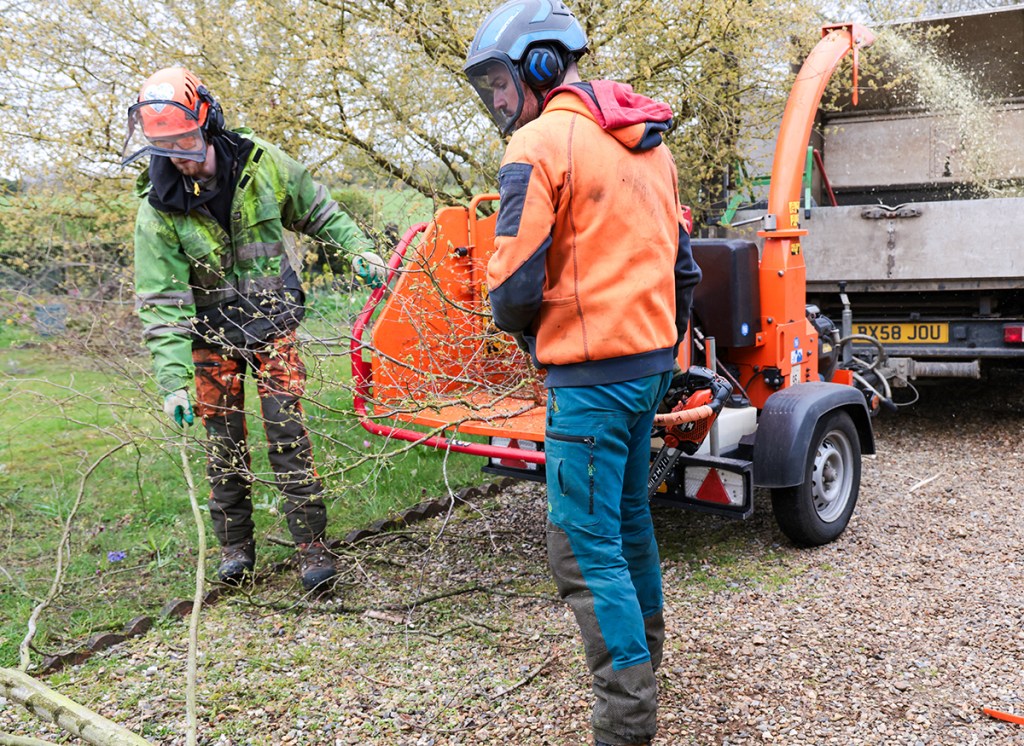 Then of course there was a need to clean up after he had cut down the branches. This is the bit I hate when I do it. Branches can be pretty irregular and mine usually get tangled up in others and they poke you in the eye as you drag them away. It was at this point that I encountered the team using a chipper. It simply chewed up the branches and spat them out at the other end. Magic – what an invention (Timberwolf) – that was the word you were looking for last week.