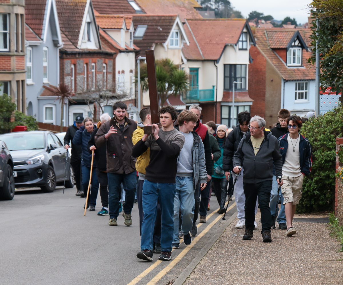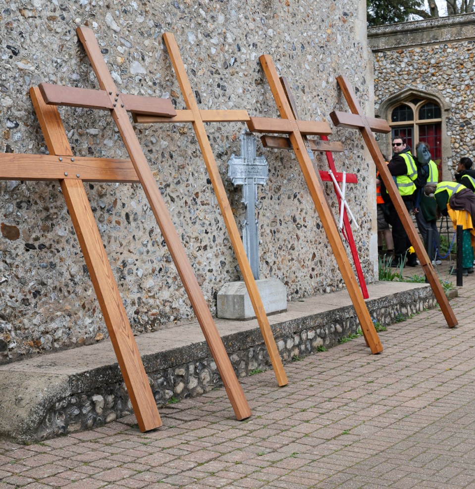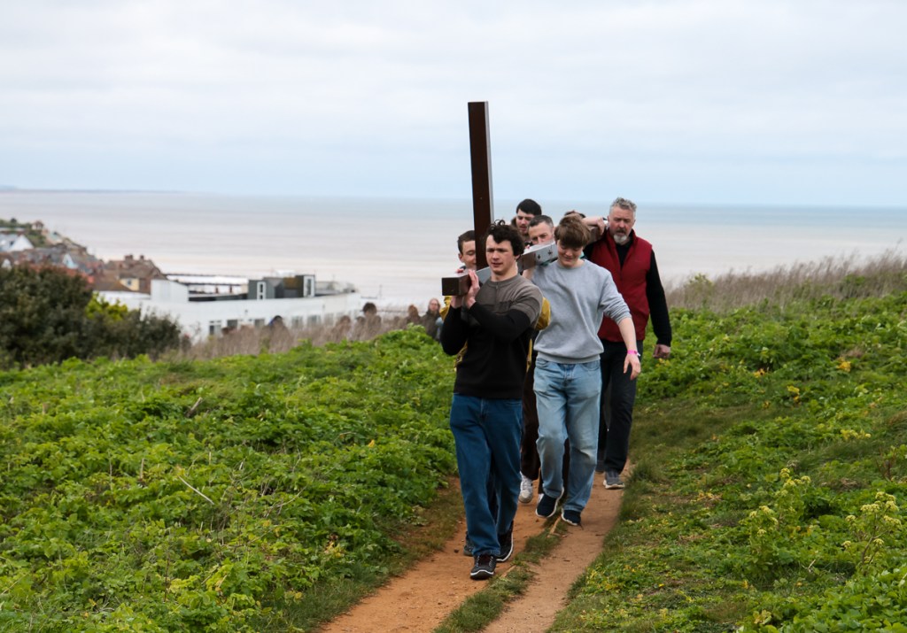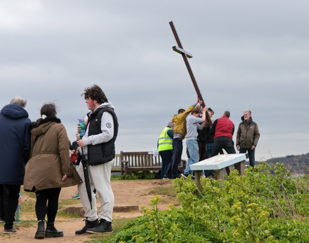 Christians and pilgrims in Sheringham, a Norfolk seaside town have a short service in the centre of the town on Good Friday morning. After that a full sized cross is carried by volunteers up to the top of a local hill – affectionally known as Beeston Bump.