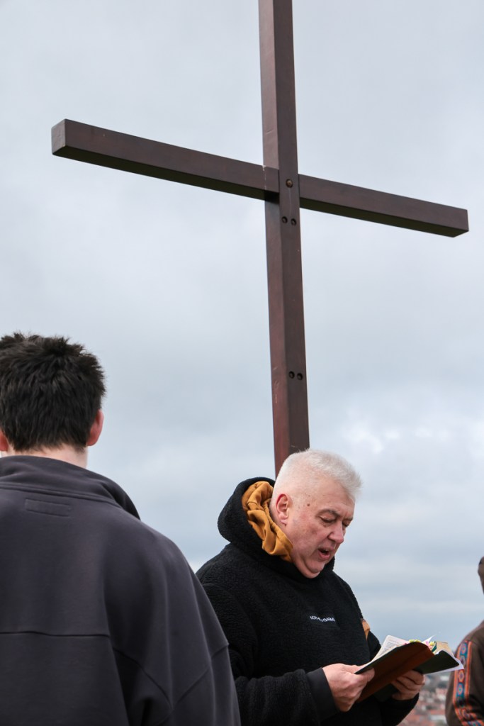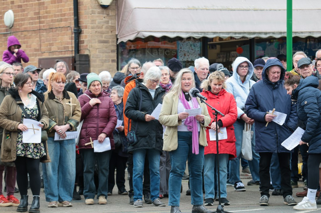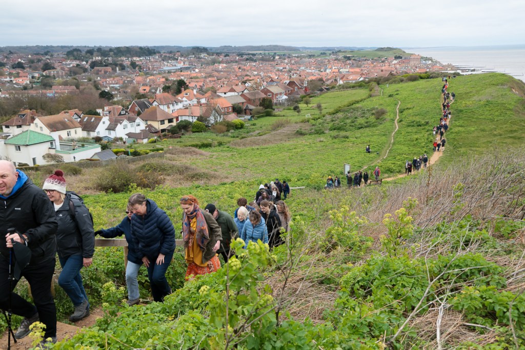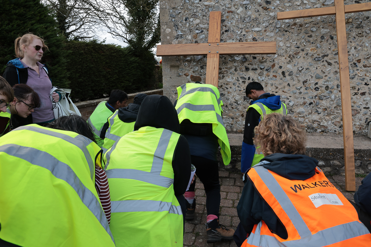 Christians and pilgrims in Sheringham, a Norfolk seaside town have a short service in the centre of the town on Good Friday morning. After that a full sized cross is carried by volunteers up to the top of a local hill – affectionally known as Beeston Bump.