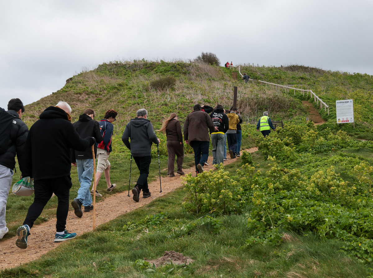 For those of my readers who don’t know Norfolk all that well – the English County of Norfolk is generally considered to be rather flat. A careful look at a map rather dispels this myth, but the reputation remains and the hill just outside Sheringham is generally referred to as “the Bump. As one gets older the route becomes more of a slog, but the view from the top, where the cross is placed and a second service said is really rather good.